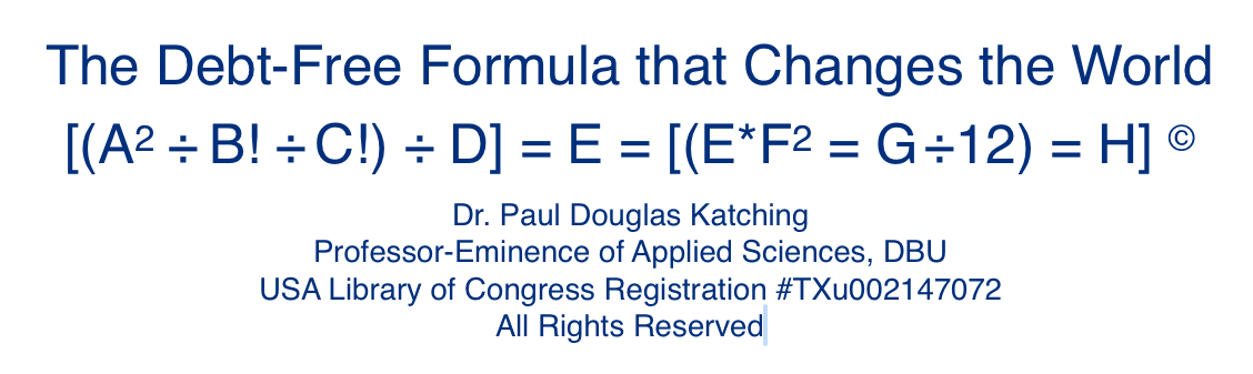 Dr. Paul Douglas Katching, lays out the scientific principles and blue-print for a business ecosystem where